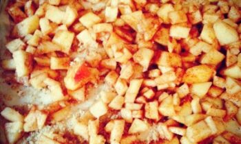 I decided to try 3 Braeburn apples and 1 Fuji. Cutting them up tiny and mixing them with lots of cinnamon, sugar, and some cornstarch, I layered them in the middle of the baklava. The whole house smelled like apple pie by the time it was done!