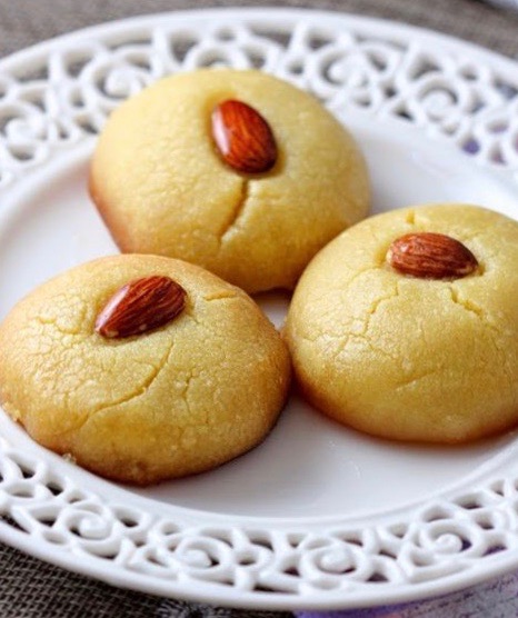 Sekerpare (shaker-pa-ray) are little sweet round that are soaked in syrup w an almond nestled on top. These can be made with semolina flour. For our GF option, please look to the GF version of this product.