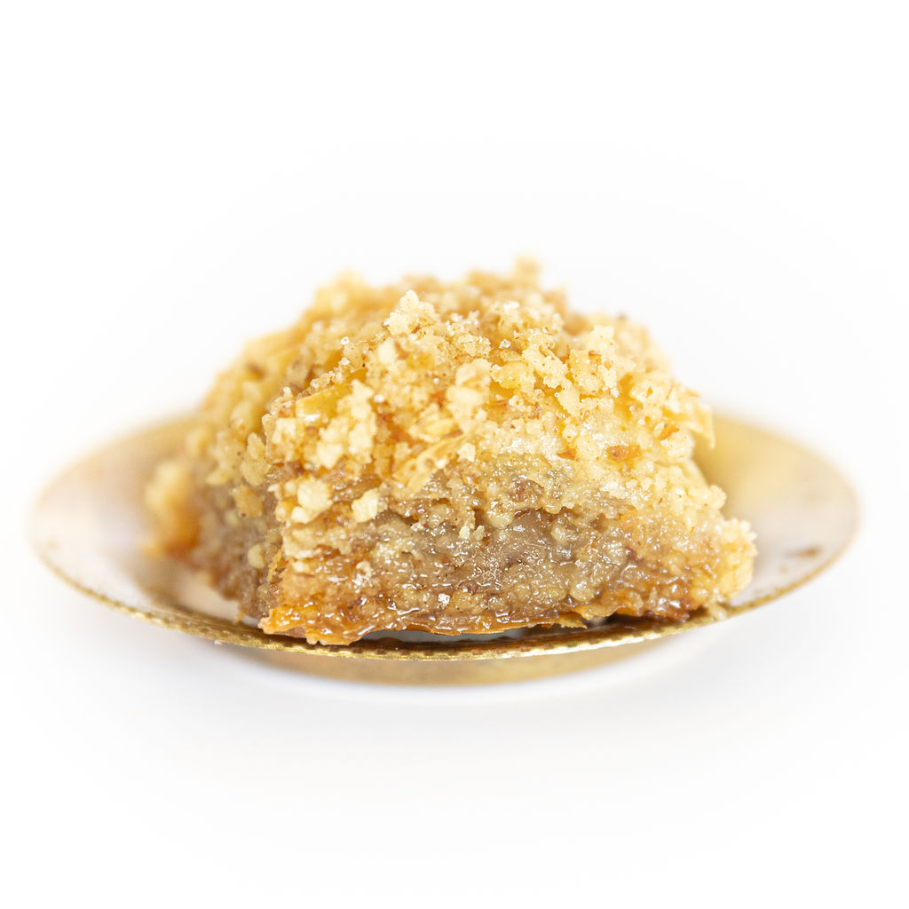 Bacon and walnut baklava with a bourbon caramel sauce
