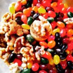 First, let me tell you that jellybeans in a food processor is the loudest thing you have ever heard! Next, jellybeans do NOT melt in the baklava when cooked.
