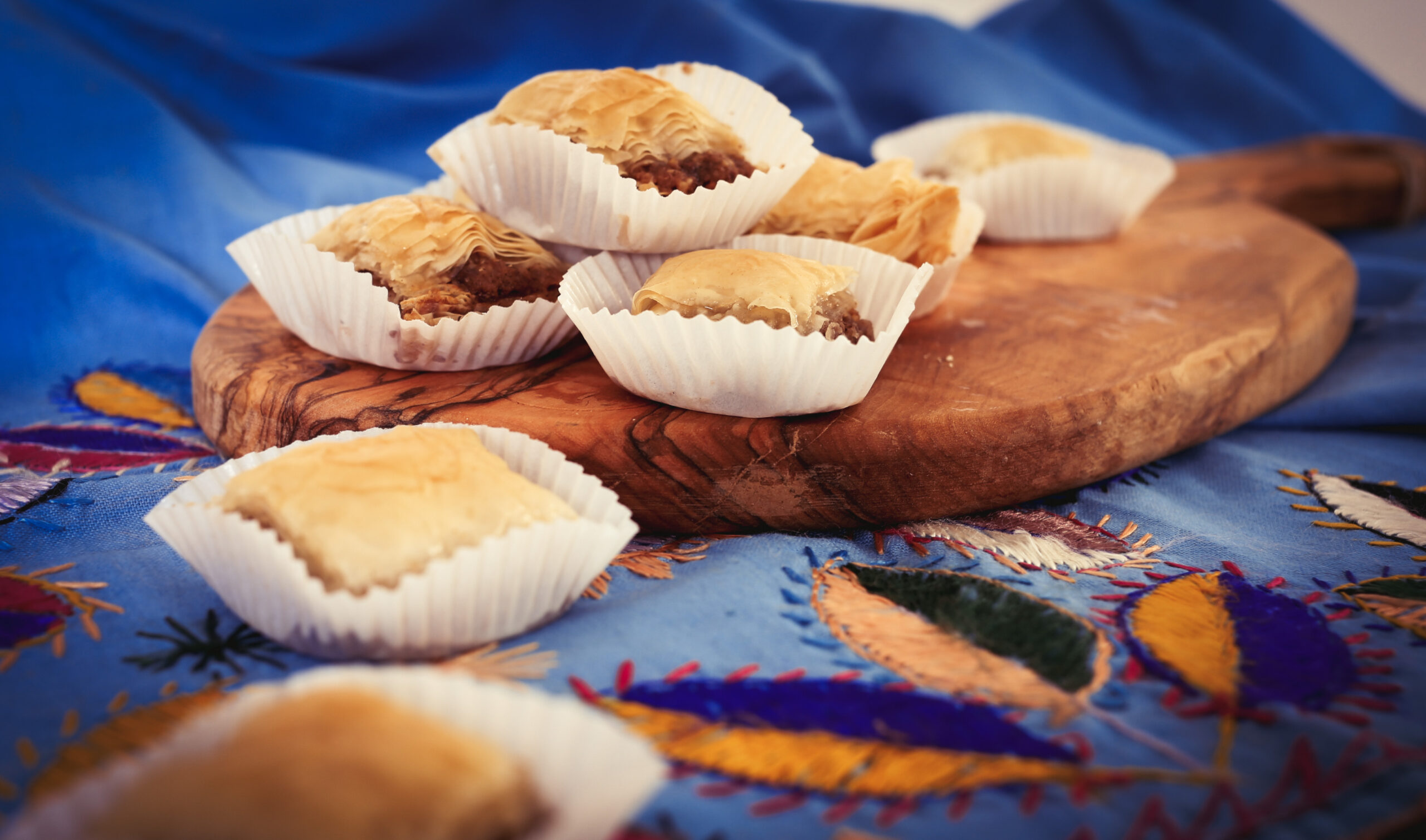 YES! We have a nut free version using seeds. Baklava can easily be made vegan with vegan “butter” or olive oil. Gluten free baklava is made with chinese rice noodles and are more nest-like because we make them in mini muffin pans